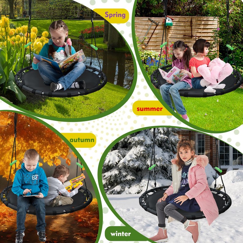 - 【Easy to Install and Use】: This saucer swing comes with all the necessary hardware and detailed instructions, making it easy to assemble and install. It can be hung from a sturdy tree branch, swing set, or any other suitable structure