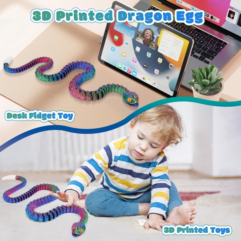 TBOLINE 3D Printed Snake Eggs, Easter Egg Filled with Toy - Basket Essentials for Kids Boy Girls, Flexible Articulated 3D Printed Animal Fidget Toys (Cool Tri-Color)