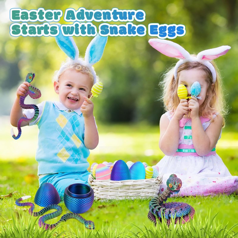 • đŸ„šđŸŒˆă€Easter Adventure Awaits】Transform your Easter into a mysterious adventure! Our vibrant 3D-printed snake eggs are ideal for egg hunts, Easter basket Essentials, and gifts that will surprise and delight all ages!