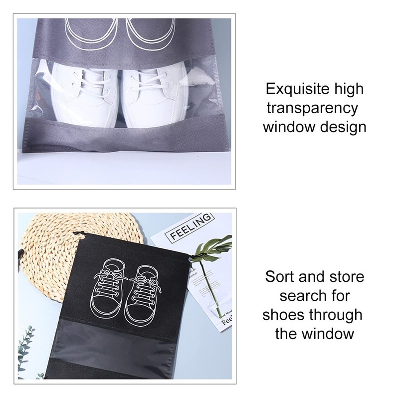 Our shoe bags are made of high-quality, durable and waterproof material, which is odourless, lightweight, soft and breathable. With drawstring design, they are easy to handle and easy to carry.