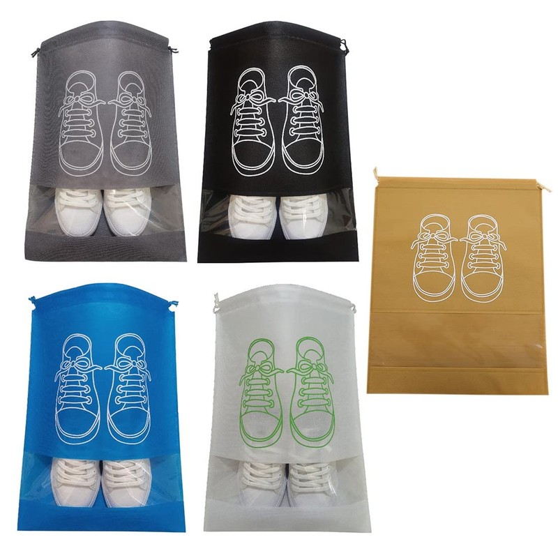 TBUQNZA Shoe Bag, 5 Pieces Waterproof Shoe Bags, Large Shoe Storage Bags, Dustproof Drawstring Shoe Bags with Transparent Slot, for Daily Use and Travel
