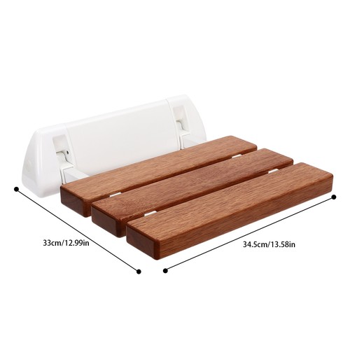 TBvechi 13.58*12.99 IN WALL MOUNTED TEAK FOLDING SHOWER SEAT,BATHROOM STOOL BENCH CHAIR