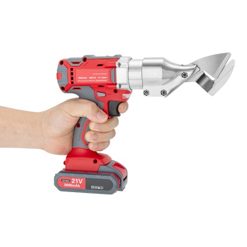 The 21V metal shear features a replaceable chrome vanadium steel cutter head for a smoother cut and longer life. The two-speed adjustment switch and the infinitely variable speed switch can make your cutting work more delicate. It also has a variety of protection, emergency brake function, and safety lock button design, which can provide you with a higher degree of security.