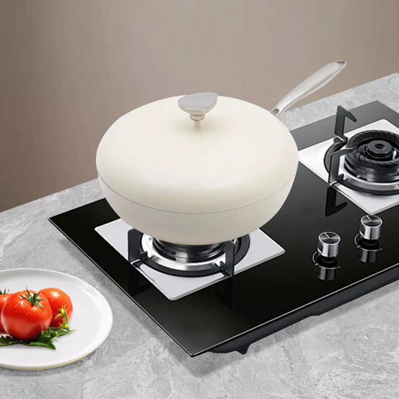This product is suitable for gas cooktops, induction cooktops, electric ceramic ovens, etc. This pot can be used for sauteing, stir-frying, braising, and boiling.