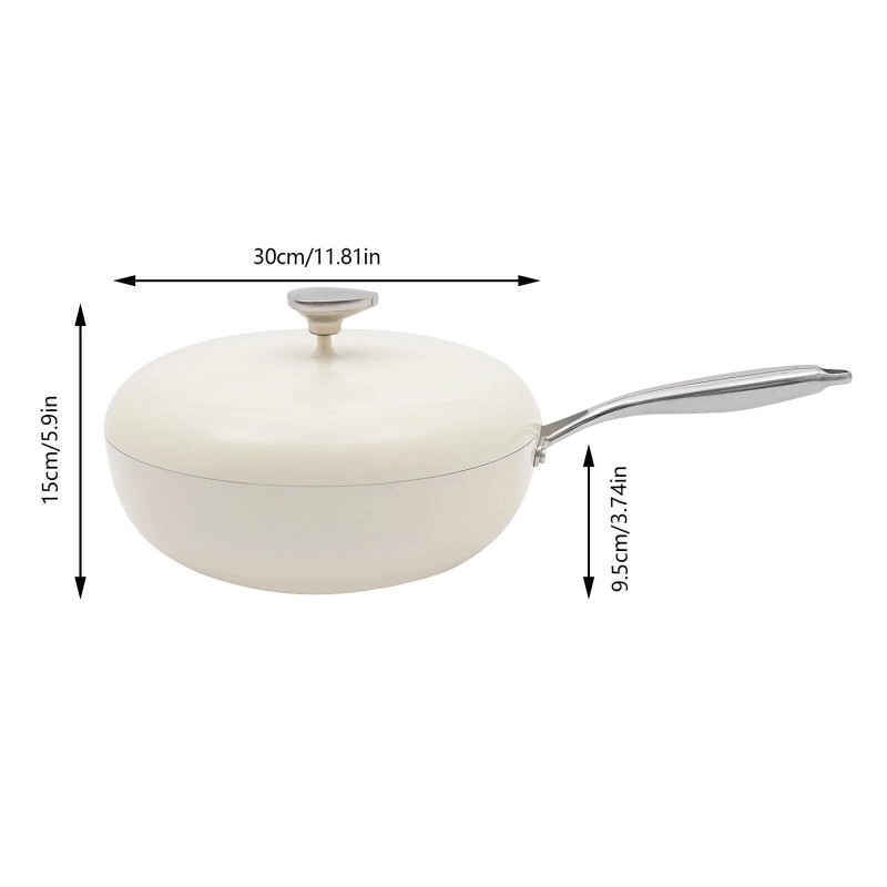 TBvechi 30cm Medical Stone Nonstick Frying Pot Skillet with Lid, Healthy Chef Pot 4.8L