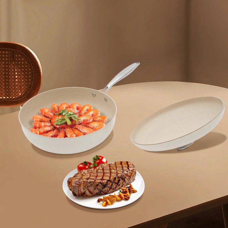 Traditional iron or stainless steel frying pots can cause your food to stick to the pots, but our non-stick pot is a good solution to this problem. It is an efficient cooking tool that combines natural medical stone coating with modern non-stick technology, combining natural beauty and practicality, aiming to bring you a healthy and relaxing cooking experience, whether it's sauteing, stir-frying, or stewing.