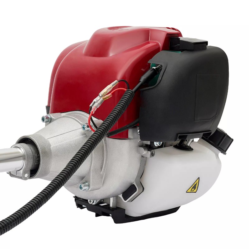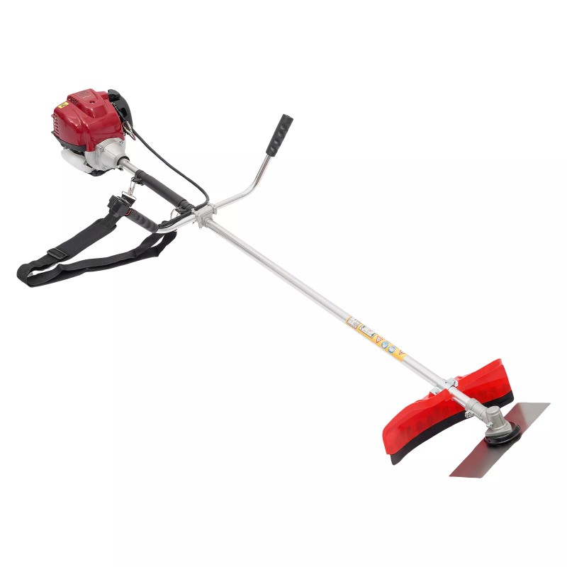 This gas-powered brush cutter is powered by a powerful 38.3cc four-stroke engine that can cut grass quickly and deliver a powerful power of about 1050W. Its manganese steel blade can sweep through many kinds of grass. Its shoulder strap and handle make maneuvering more comfortable and stable. This is an efficient, versatile, and durable gardening tool.