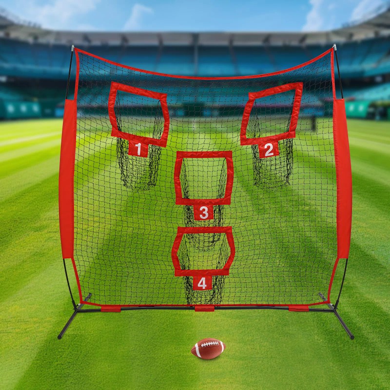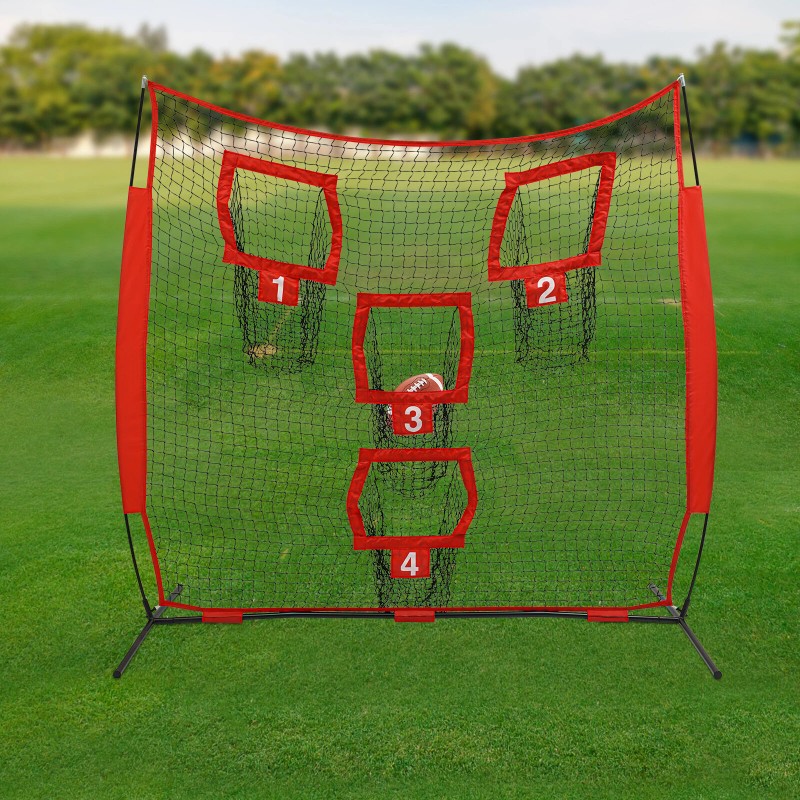 TBvechi 7*7ft Football Trainer Throwing Net, Red Football Training Net w/4 Target Pocket