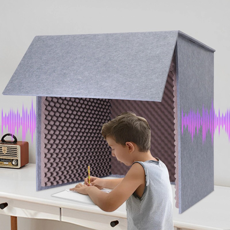 Are you still troubled by issues such as excessive noise outside the room, excessive reverberation noise in the room, and severe equipment background noise? Our desktop soundproof cover can effectively solve this problem for you. It adopts high-quality materials and a dual sound insulation design, with a better sound insulation effect. The simple structure and foldable design make it easier for you to use and store. It can create a private space for you to concentrate on work and study.