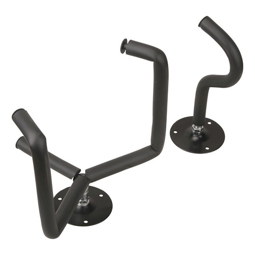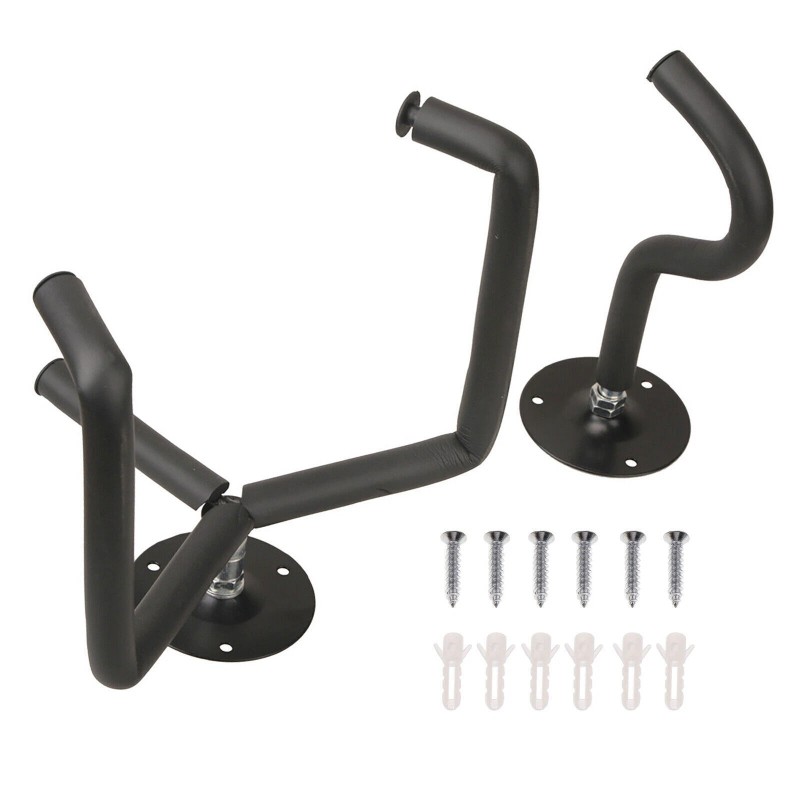 MATERIAL - This Guitar Holder is made up of foam wrapped around the iron frame, which is stable and can protect the instrument, extended out so guitar will not touch wall. SUITABLE for a variety of instruments - The Guitar Holder recommended for most acoustic & wood guitars, electric guitars, bass's SAFE SPACE - Mounting on the wall is not only beautiful but also saves space, suitable for both home and studio to use. EASY TO INSTALL - Easy to assemble and install ,mounting screws included, and very stable. DESIGN - Split design, freely adjust the angle of the guitar oblique hook. Colour:black Horizontal hanging of the guitar pressure or side pressure is applied to the neck / body. Good quality Installation takes just a minute, work as it should be and ensure stability and presentation.