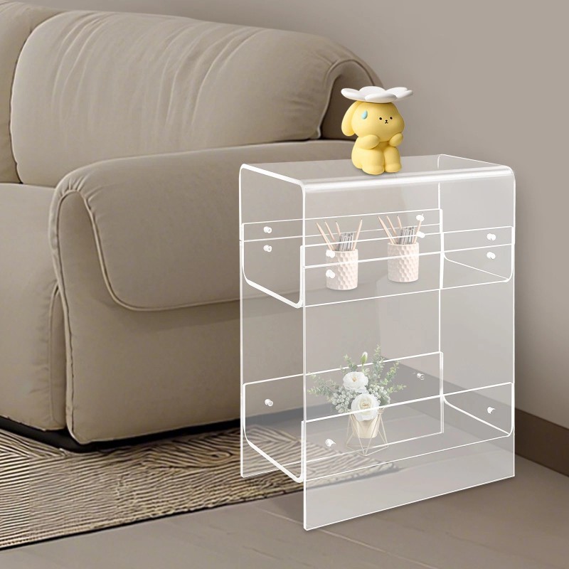 Our 3-tier narrow acrylic side table, with its unique design and outstanding quality, has become an eye-catching choice for home decoration. Its design is simple and modern, suitable for various home environments such as kitchens, bathrooms, or offices. It has three tiers, each tier can withstand a certain weight and is suitable for placing various items such as cosmetics, books, and stationery. This product is an ideal choice for organizing clutters and bringing unique charm to your home environment. Come and buy it!