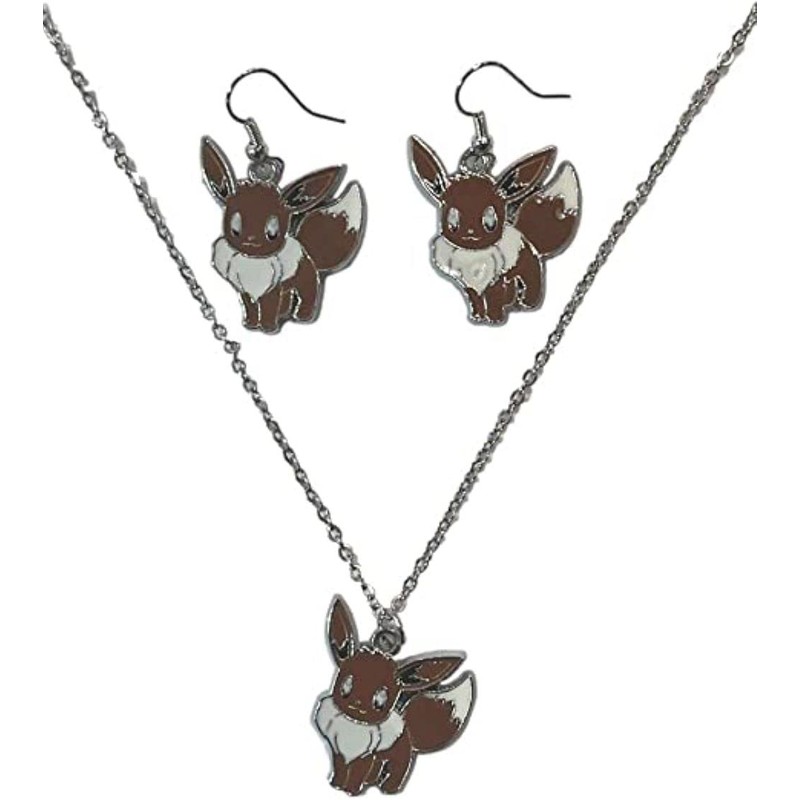 - Eeve Character Charm Pendant Necklace And Earrings Set