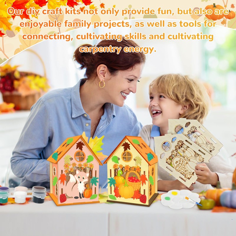 - DIY fun for little artists: children can paint and design the wooden parts freely and make their own personal autumn house. Whether girls or boys - this autumn craft set children is perfect for creative children who want to create their own imaginative autumn houses when crafting autumn