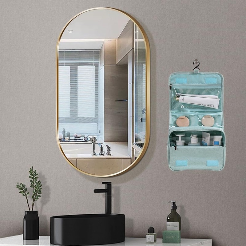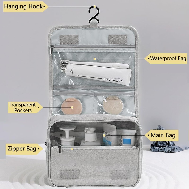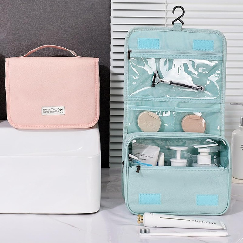 - Hanging Hooks --- Cosmetic bag can be hung on towel shelves and coat hooks to save counter space and make it easier to receive items. Toiletry bag with zip and Velcro fastener, double security and extremely durable.