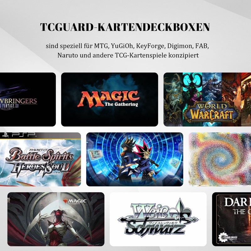 - Ideal gift: thanks to the high-quality workmanship and generous dimensions, the MTG Card Box offers enough space for your favourite Magic Commander / EDH deck. The TCGUARD trading card box is a good gift for yourself, family and friends.