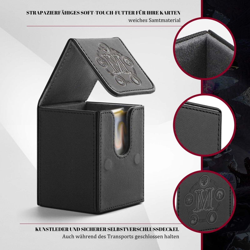 - All-round Protection The outside of MTG 100 cards deck box is made of PU leather and the interior is soft velvet to protect your cards even under heavy pressure. Perfect for carrying your deck comfortably.