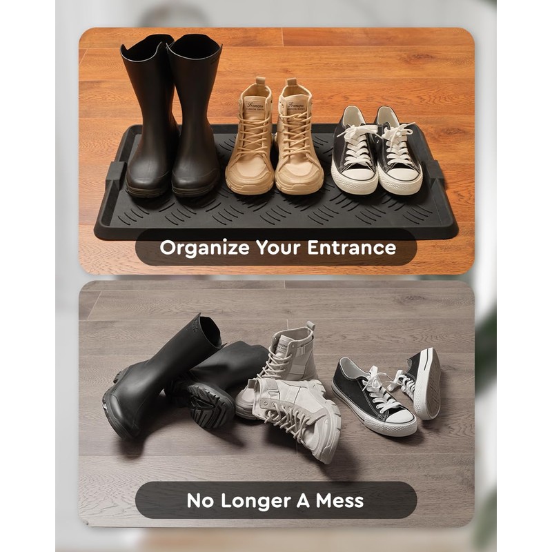 - Large CapacityThese boot mat tray are designed to accommodate three pairs of shoes or boots. The dimensions of the narrow tray will fit your space perfectly and meet your entryway needs.