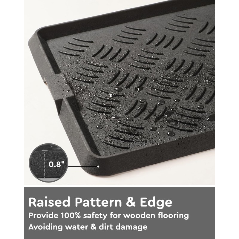 - Raised EdgesBoot trays for entryway has raised edges to contain liquids and debris that fall off your footwear. This helps prevent messes from spreading.