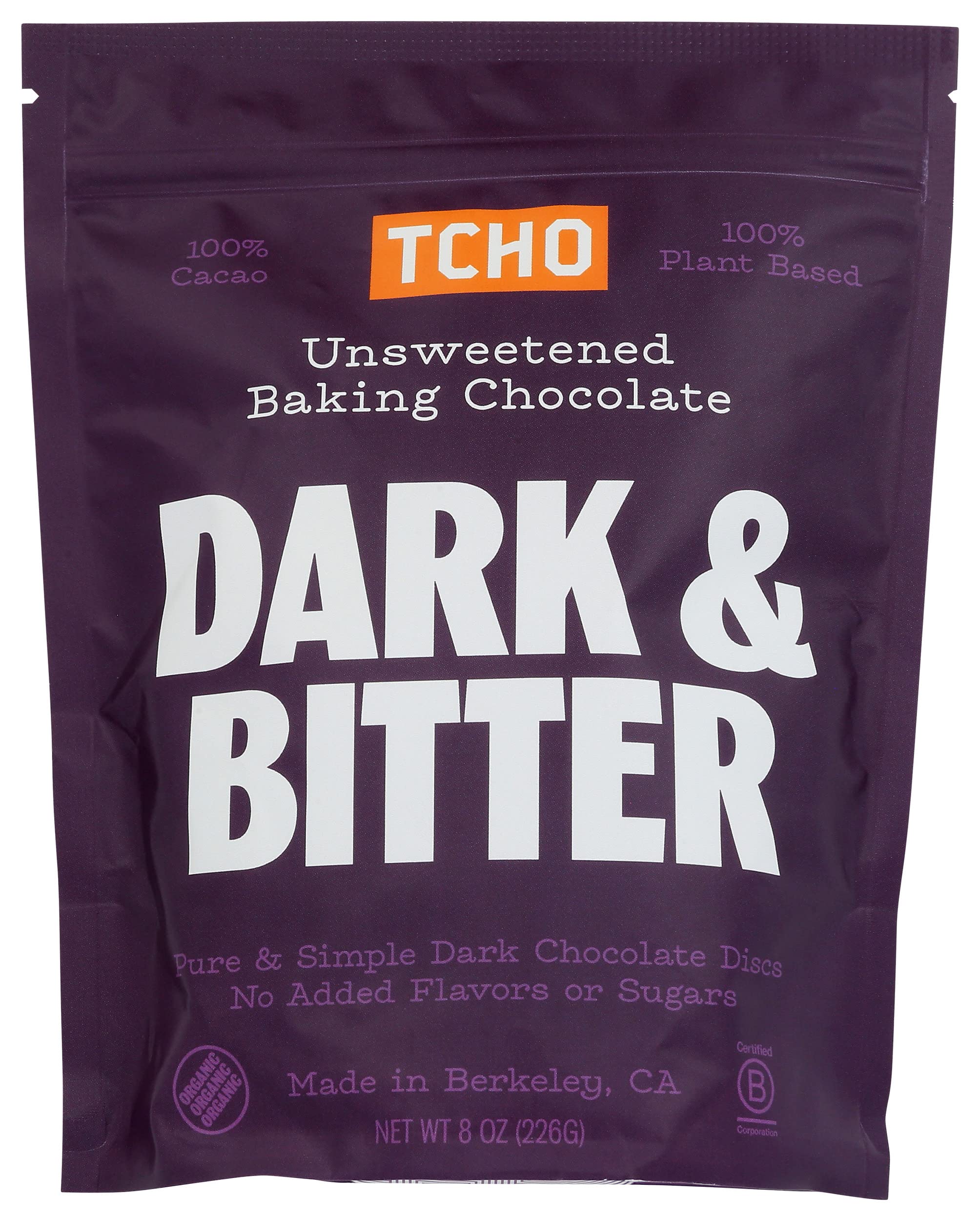 - Tcho Unsweetened Baking Chocolate, Dark & Bitter, 100% Plant Based, 100% Cacao, No Added Flavors or Sugars, Vegan, Kosher, USDA Certified Organic, Non-GMO, 8 Ounce (Pack of 6)
