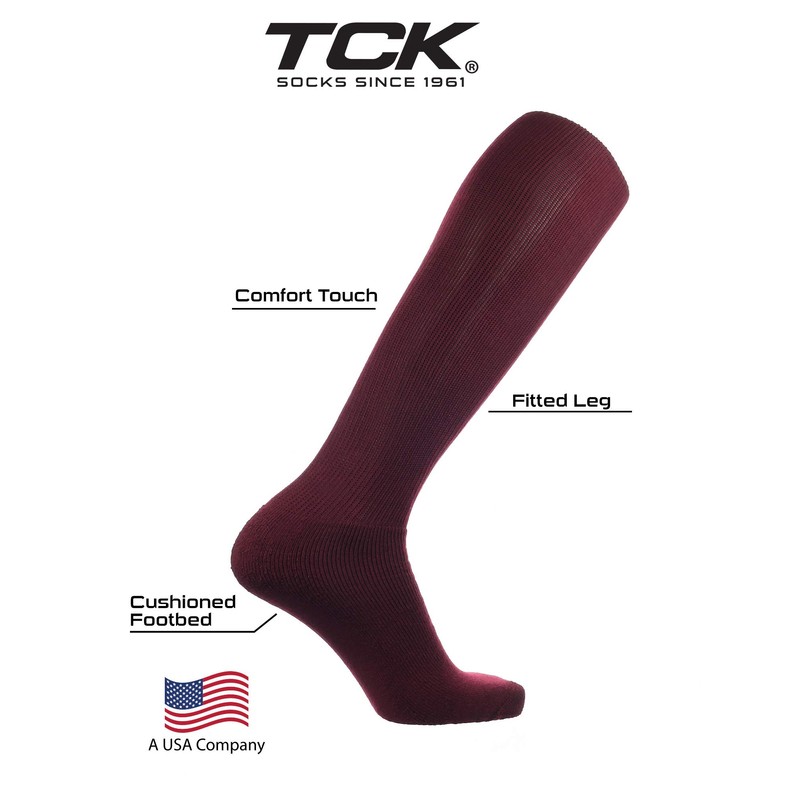 TCK TS All Sport Polyester Baseball Football Soccer Volleyball Tube Sock (Maroon, Medium)