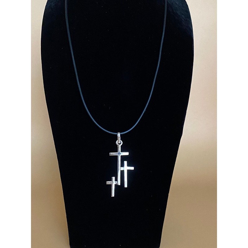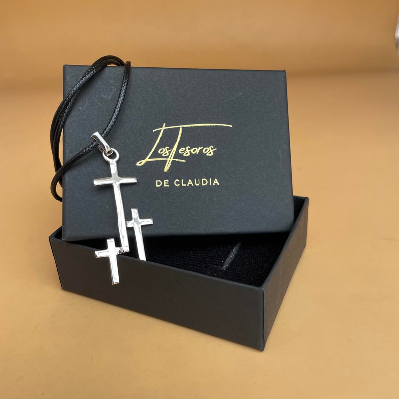 TCLAUDIA Collar Cruz Triple Plata 925 con Hilo Negro 45cm - Joyería Religiosa Mexicana Artesanal de alta calidad - Regalo Hombre Mujer, Día del Padre, Aniversario, Cumpleaños