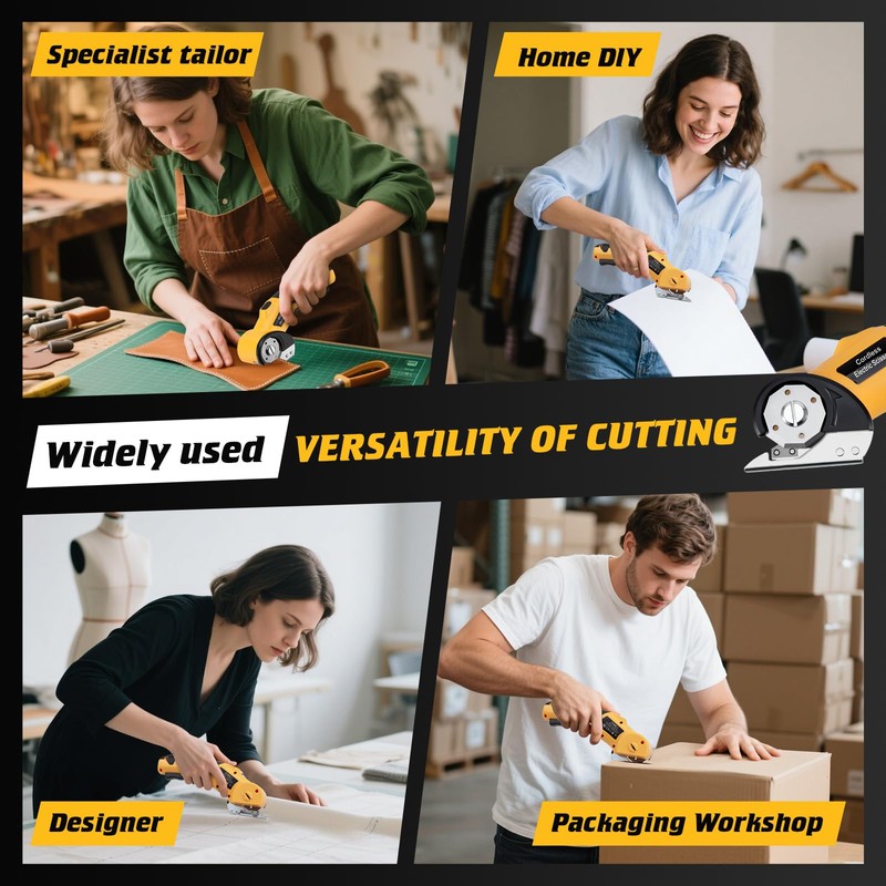 - VERSATILITY: Electric box cutter for cardboard ideal for craft enthusiasts across ages and professions. Tailored for designers, tailors, DIY aficionados, and anyone passionate about handicrafts, it proves versatile across various materials such as paper, cardboard, fabric, plastic, leather, carpet, and more