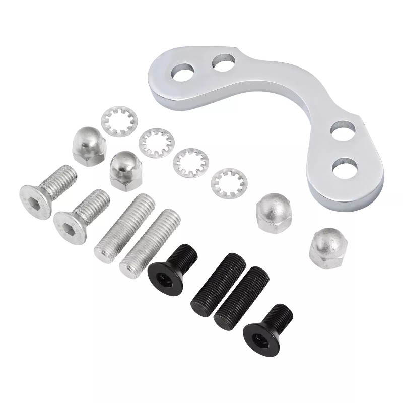 Adapter is used on front springer forks and adapts 4-3/4" riser holes to standard 3-1/2"