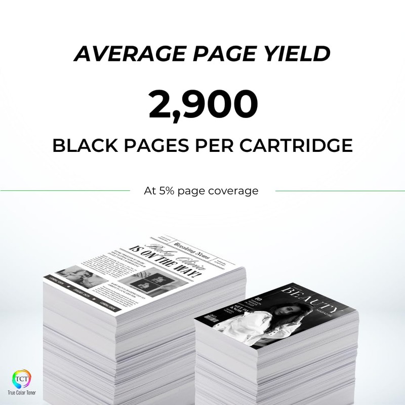 - Page Yield: Up to 2900 pages at 5% coverage (Letter/A4) per cartridge.