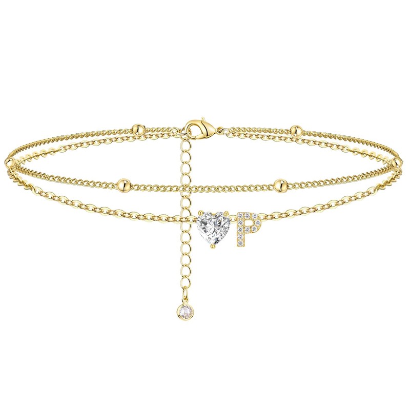 - Ankle Bracelets Design: The letter anklet design with a shiny CZ heart and beaded chain,multi-layer design,match the initial giving the gold anklet special meaning. name anklets is the perfect choice for your summer jewelry