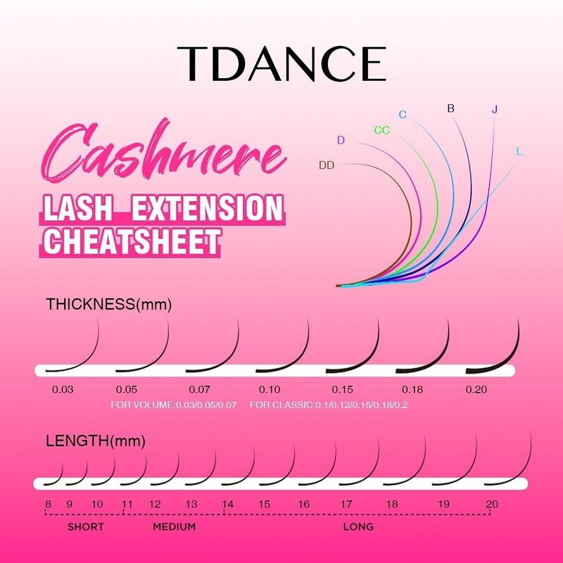 - 【Different specifications classic lashes can be chosen】 Thickness:0.03/0.05/0.07 Curl:C/DD/D Length:8-20mm Single Length, 8-15mm&10-17mm&14-19mm&20-25mm Mixed Length.12 Rows/Tray. The cashmere eyelash extensions are very lightweight and fine lashes suitable for multiple russian volume fanning techniques.