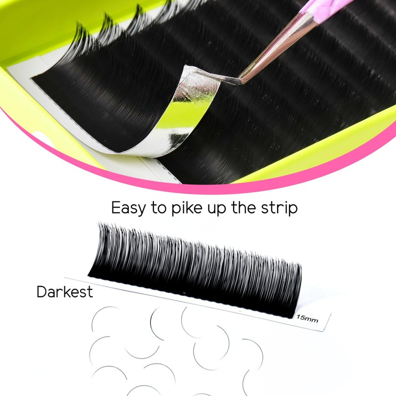 - 【Easy to use】 The classic eyelash extensions lashes are easily to removed from the transfer belt. No residual, no stick, no kink. Silver foil paper card, so that the strips are easily to be picked up from the tray, easy to tear.