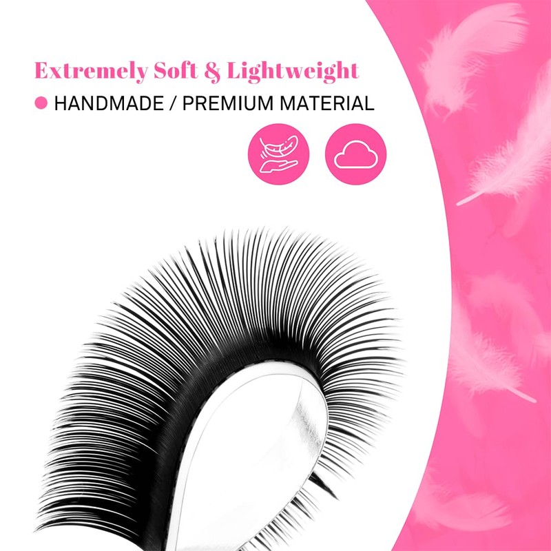 - 【Super soft cashmere lash extention】Our cashmere lashes are made from upgraded cashmere fibers. It's more soft and light weight. They fan like butter and help you create the most luxurious fluffy sets and create thin bases. You can use the lash extensions for classic, hybrid, volume and mega volume sets.