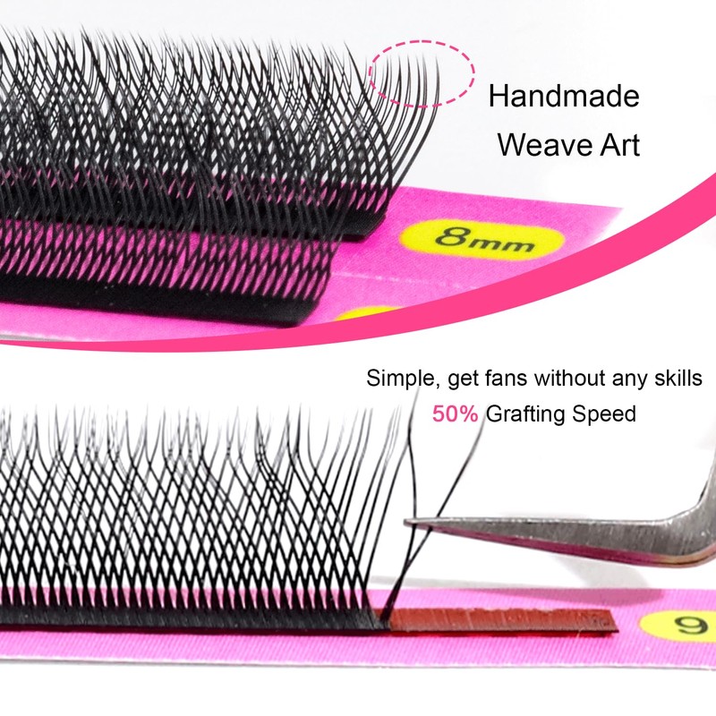 - Better Retention:Compared to individual lashes, these Y shape premade fans provide a stronger bond and retention to lashes. Because they have a long stem which can increase the contact area with natural lashes.