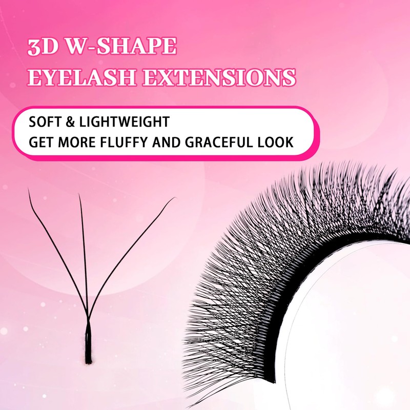 - 3D W Lash Extensions - The base of the 3 eyelash extensions is bonded together. You can get fans directly without any skills.