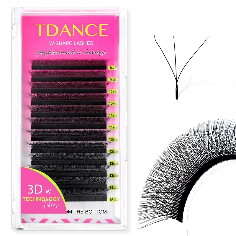 TDANCE W Eyelash Extensions 3D Premade Fans W Shaped Volume Fans W Lashes Matte Black Lash Extensions(W-3D-0.07-L-8-15mm)