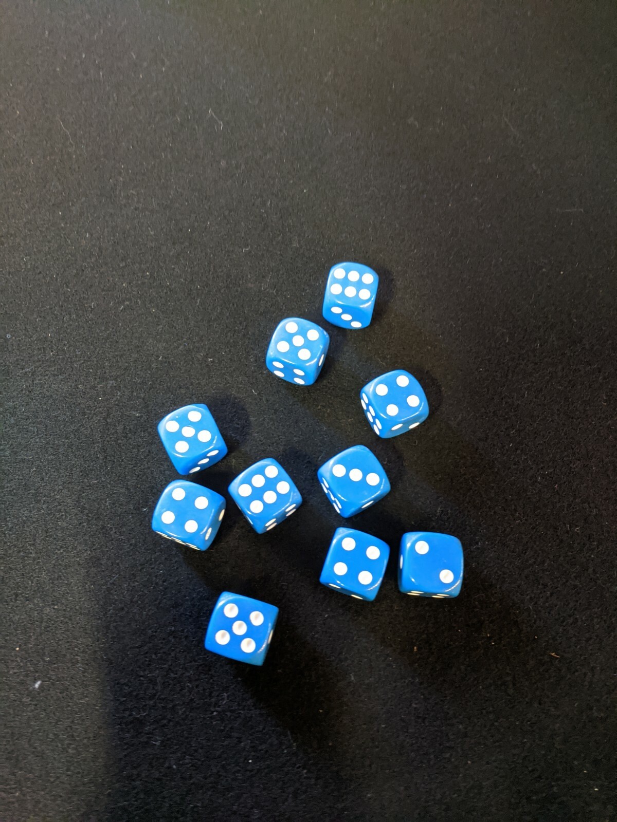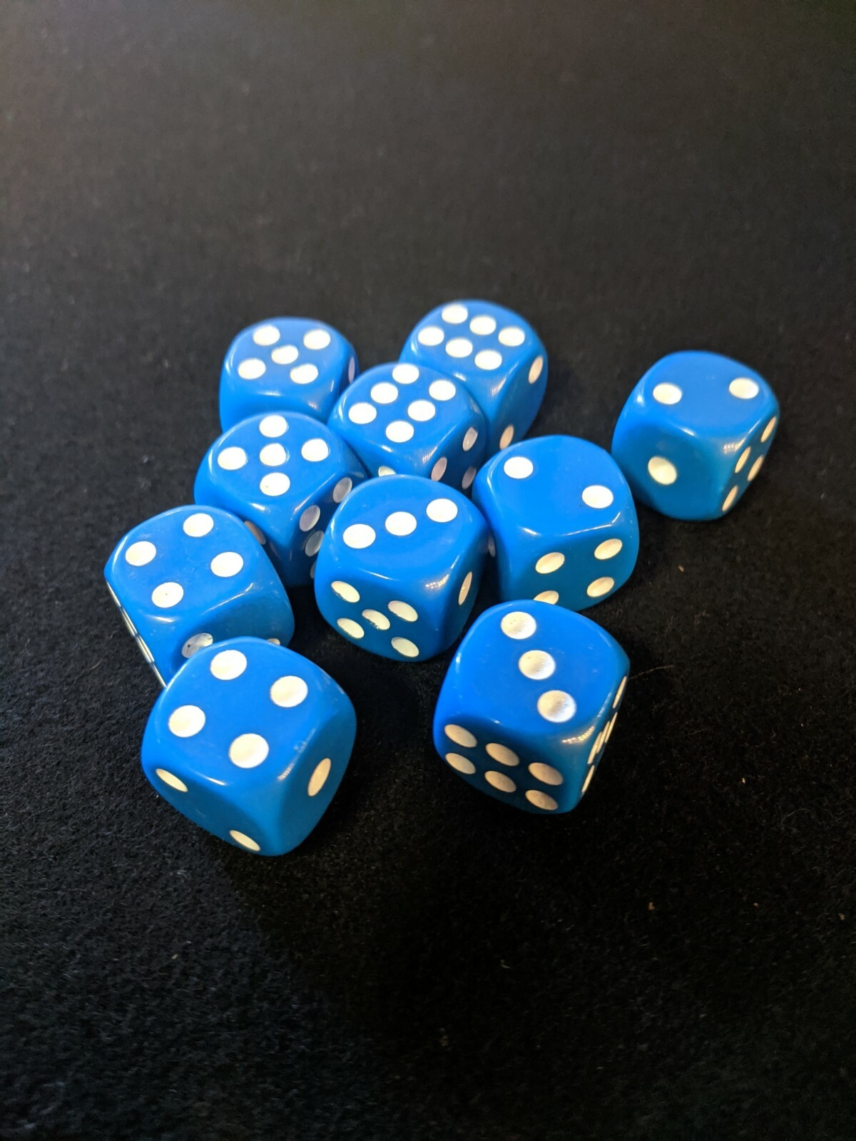 TDC Games 10 pack 16mm BLUE Dice -Opaque - White pip - Rounded Corners