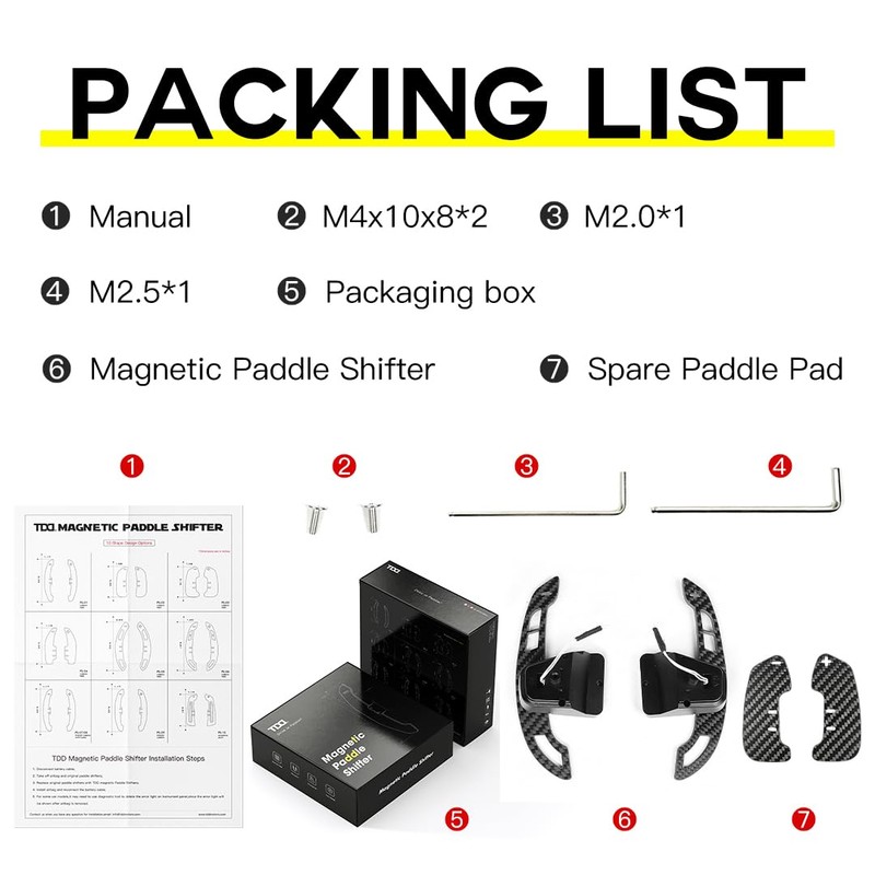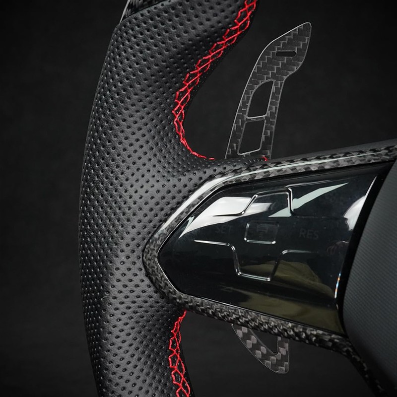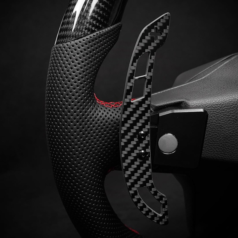 Complete with a sturdy aluminum base and imported shift switch, this paddle ensures a reliable, premium feel that lasts. Install and enjoy a refined, sporty upgrade to your driving experience! These magnetic paddle shifters are a seamless fit with your vehicle's original steering wheel and require no complex installation process. Not only are they a functional upgrade, but they also bring a luxurious, sporty atmosphere to your cockpit. Whether for performance or aesthetics, these Carbon Fiber Magnetic Paddle Shifters are the ideal upgrade for your car.