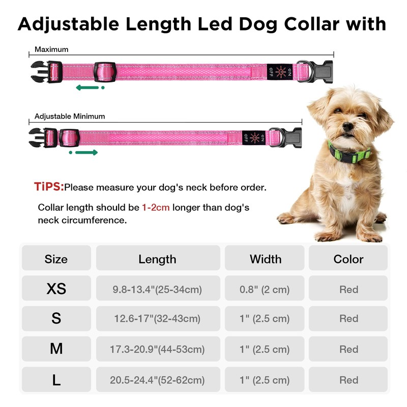 TDTOK LED Dog Collar Rechargeable Flash Dog Collar, Adjustable Durable Nylon Comfortable Light Up Dog Collars for Small Medium Large Dogs with Reflective Lines Lightweight Plastic Buckle