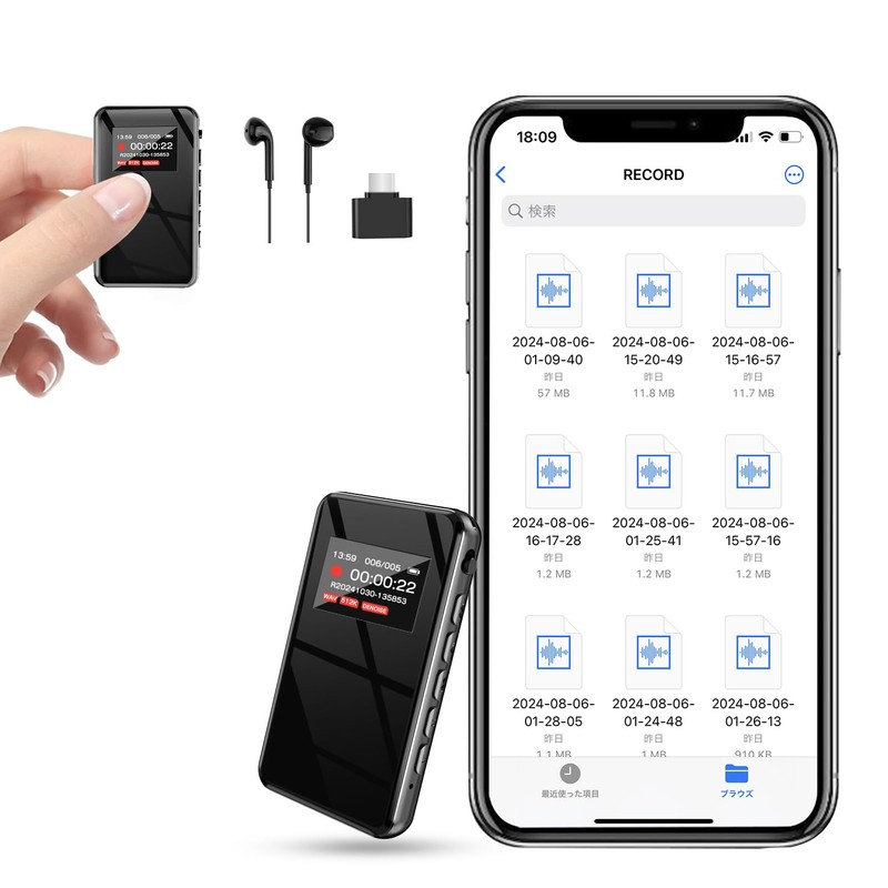 - (1536 kbps unique high sound quality design, OTG function compatible, easy data management) 6 levels of ultra-high sound quality, from 32 kbps to 1536 kbps, so you can choose it according to the location of use. 360° omnidirectional microphone allows for clear recording even at a distance. It can record quickly when you need it, and features a low-pass noise filter and adjustable sensitivity for clear sound. It features a noise cancellation function that allows you to record audio clearly even in noisy environments. Detects farther ambient noise and nearby audio input levels to suppress noise only. OTG compatible, easy to transfer data to your iPhone or Android Transfer data directly to your smartphone without the app so you can share your recorded data quickly and smoothly. For busy businessmen and researchers, this feature is very convenient and helps you to easily migrate and check important recordings
