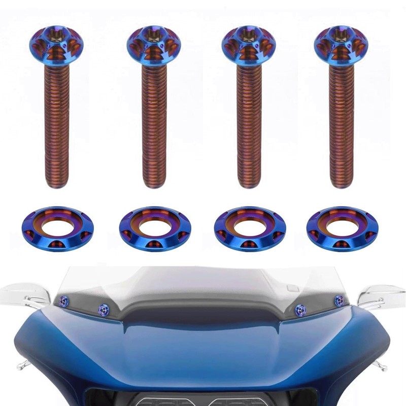 TDZ Blue Titanium Windshield Bolts, Windscreen Screws, Fairing Bolts for 2015-Up Harley Davidson Road Glide