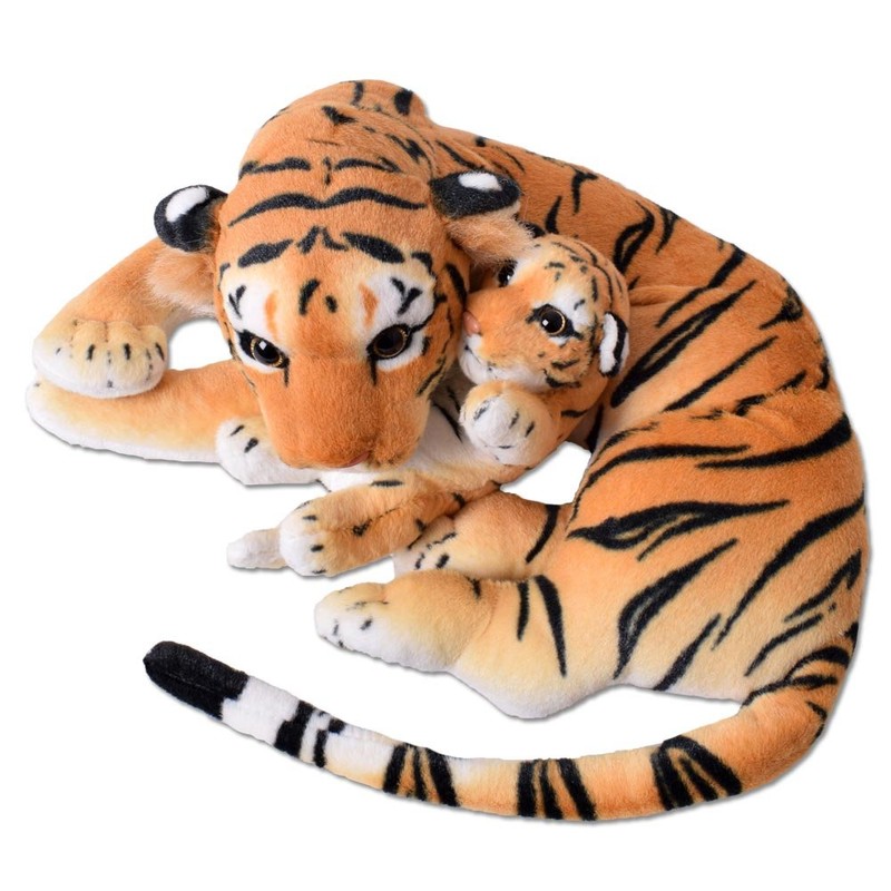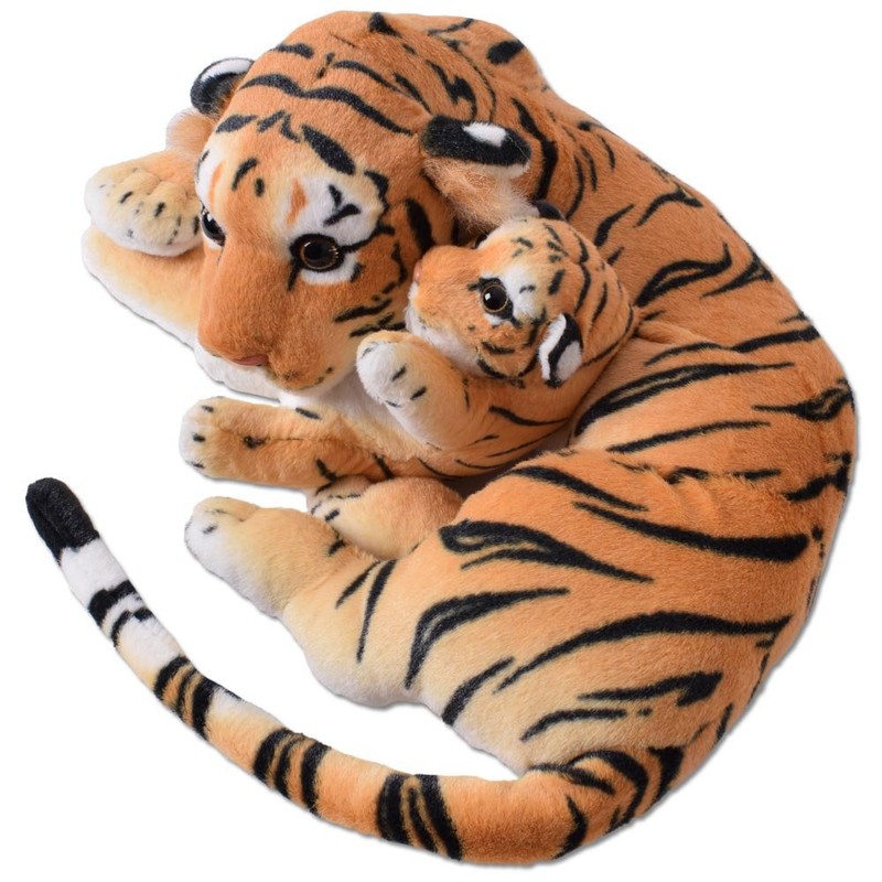 - Decorative plush predator tiger with tiger baby in typical colour with a length of approx. 60 cm in and lifelike design in lying and caring posture