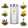- Tea in its most beautiful shape: 6 different tea flower varieties (high-quality green and white tea with real flowers) in a high-quality metal tin as a tea gift set.