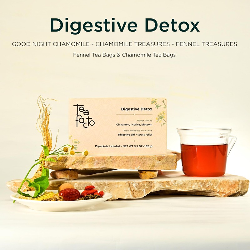 Tea Facto Detox Chamomile Tea Bags - Chamomile Tea Organic Natural Ingredients | Goodnight Chamomile & Digestive Ginger Tea | Ginger Tea Bags for Relaxation & Wellness | 15 Whole Leaf Tea Bags