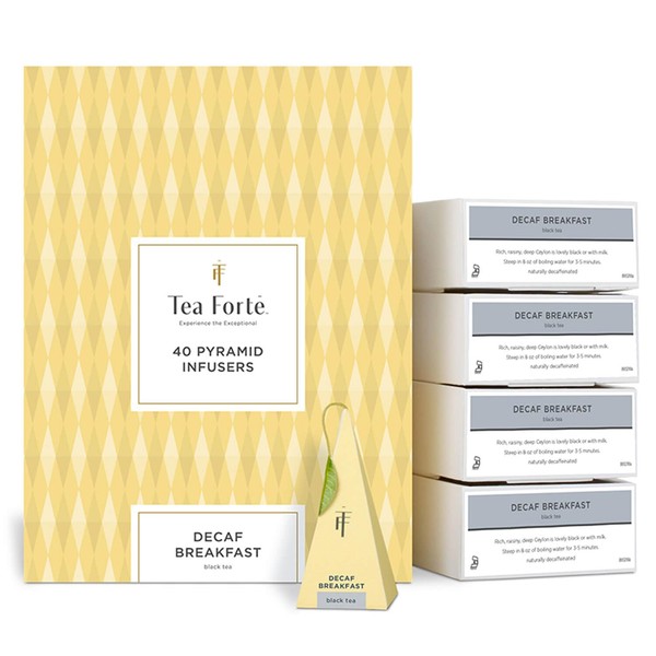 Tea Forte Decaf Breakfast Premium Caffeine-Free Black Tea Blend Event Box, Bulk Pack 40 Count, 10 per tray Individually Wrapped Handcrafted Pyramid Infusers