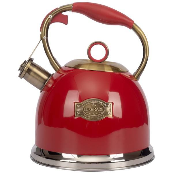 Tea Kettle, Stovetop Whistling Teapot, Stainless Steel, Red, 3.0-Quart