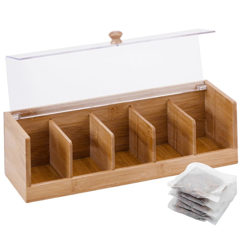 - Spacious 5 Compartments: Designed with 5 individual compartments, this tea box provides generous storage for tea bags, coffee pods, sugar packets, and more. It keeps your collection neatly separated, ensuring quick and easy access to your favorites.