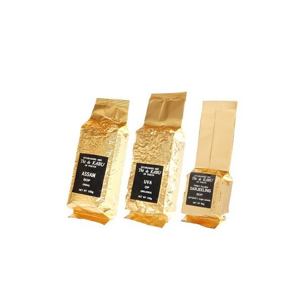 - Darjeeling 2nd BOP 2.8 oz (80 g), Uba OP, 3.5 oz (100 g), Assam BOP, 3.5 oz (100 g)