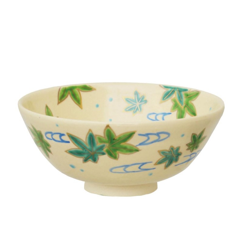 Tea utensils, Flat Rice Bowl, Color Picture, Blue Maple Running Water by Miyama Higashiyama