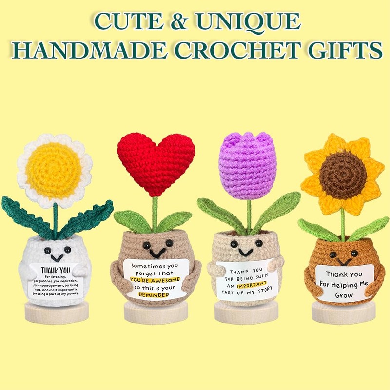 - 【Heartwarming Expression of Gratitude】Speak your heart by gifting these emotional support crochet plants that come adhesive with "Thank You for helping me grow" ,"Thank You for Listening","Youre Awesome"; Offering a sincere way to showcase your enormous gratitude to teacher/ family/friend.