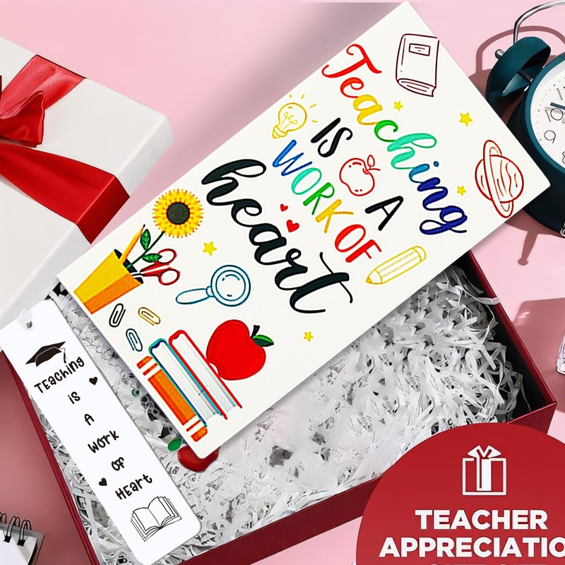 Teacher Appreciation Gifts- Teaching is A Work of Heart Bookmark&Sticky Notes Set- Cute Student Teacher Gifts, Novelty Daycare Teacher Gift, Teacher Christmas Gifts, Teacher Valentine Gift